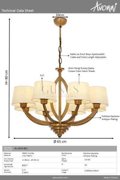 Ampül Türü: 8 x E27 Max.48W – Ampüller ürüne dahil değildir.